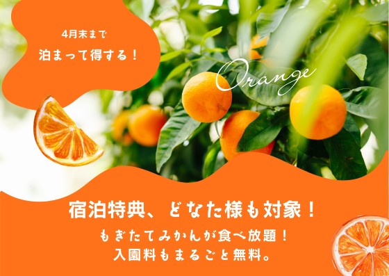 宿泊者全員特典!みかん狩り食べ放題付き無料